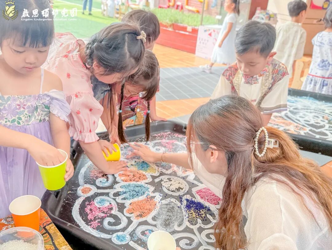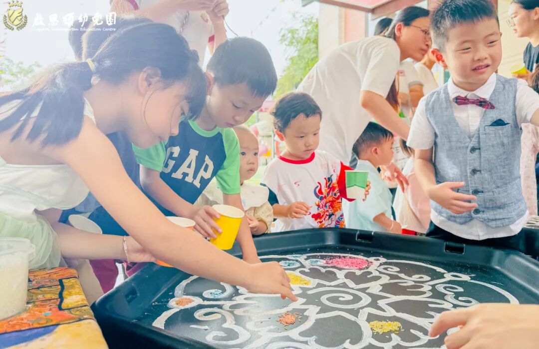 印度地画,又称为曼达拉艺术或印度曼达拉,是一种源自印度的古老艺术形式,它以圆形或方形的图案为中心,向外辐射出复杂的几何形状和图案。这种艺术不仅美观,而且富有象征意义,代表着宇宙的无限和生命的循环。每个孩子的作品都是这幅画中不可或缺的一部分,它们共同构成了一个多彩的、充满生机的曼达拉。这不仅仅是一次艺术创作,更是一次团队合作的体验。