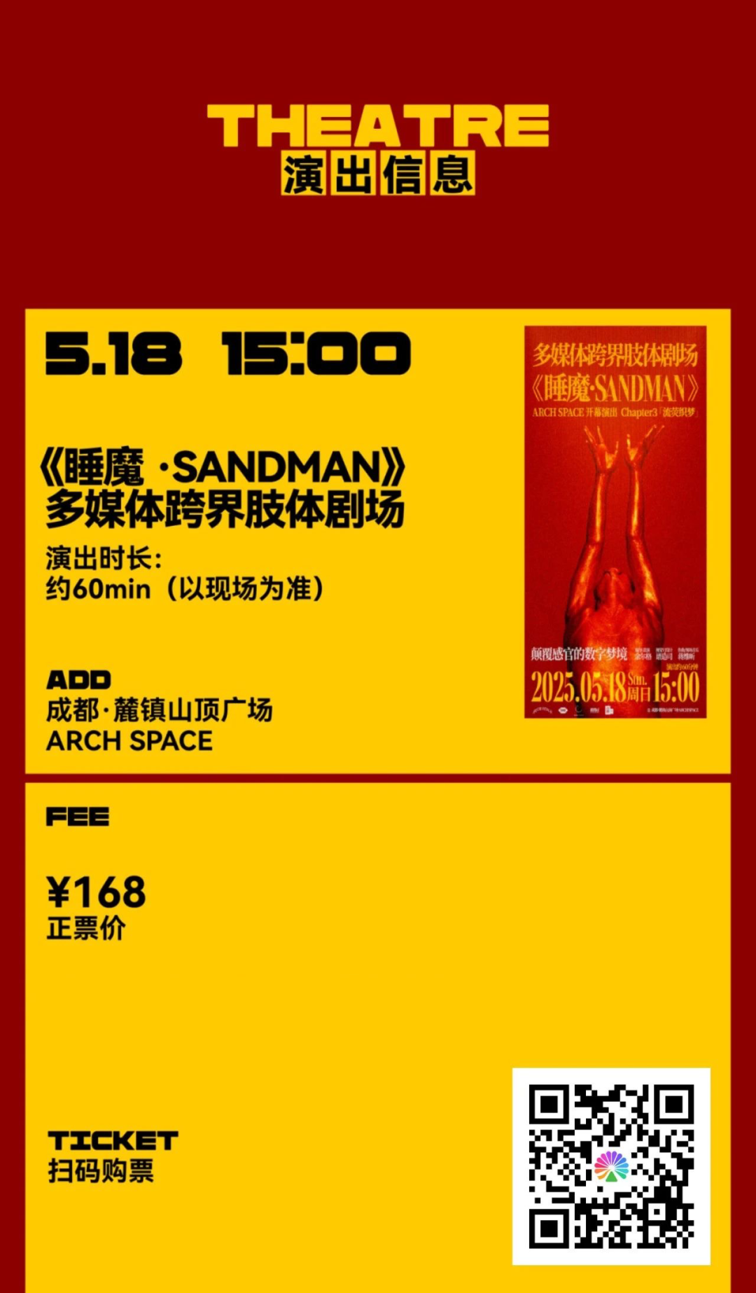 摘要:2025年5月18日 15:00\x0d成都麓镇山顶广场·ARCH SPACE