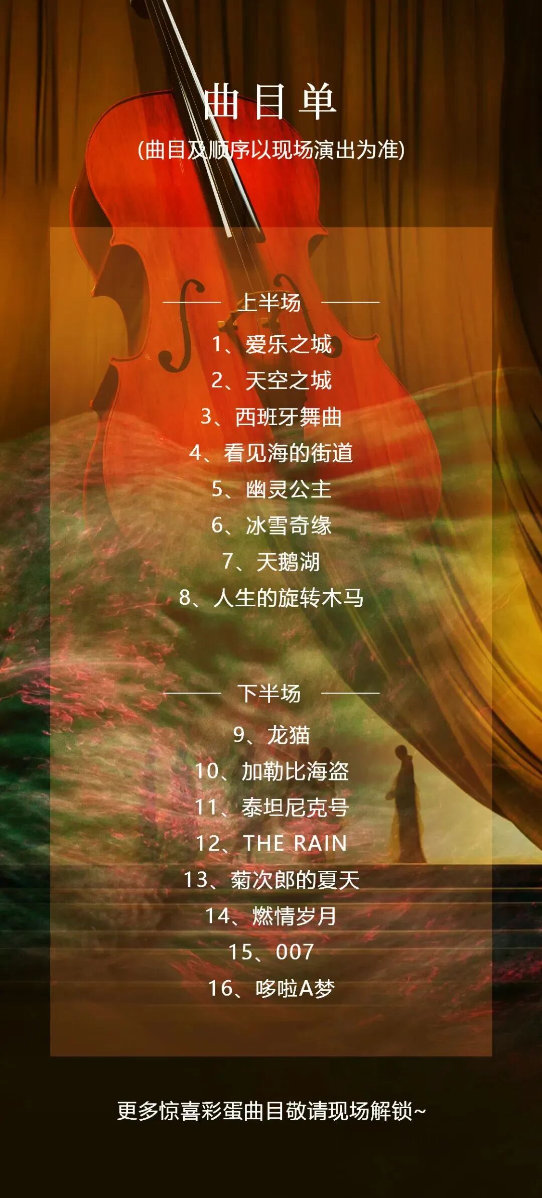 本场音乐会将以各个国家经典的动漫、电影曲目作为串联
