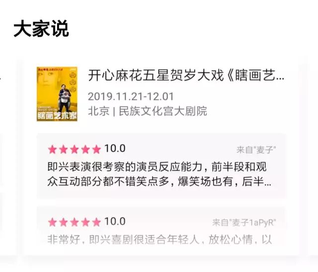而演出结束后在大麦App上提交观演评价,现在还可抽取观剧红包哦!畅快看好剧,从分享剧评开始!