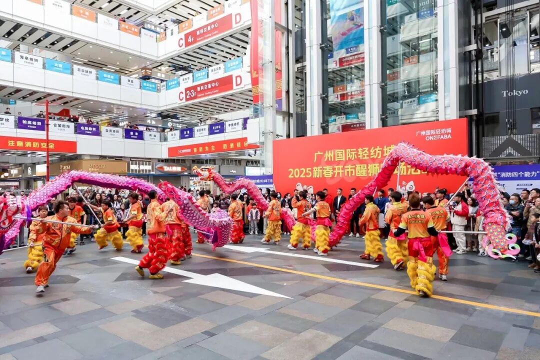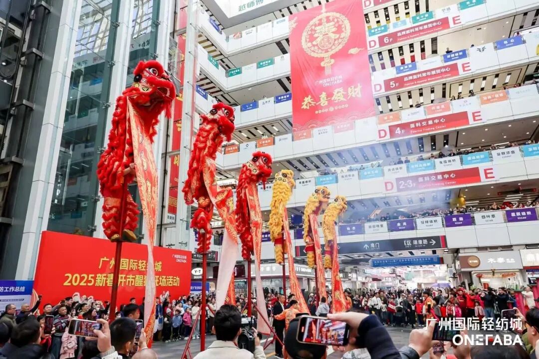 祥龙腾空辞旧岁,灵蛇驾云织新景。2月9日(农历正月十二)上午10点,广州国际轻纺城"2025新春开市醒狮旺场活动"如期震撼登场。作为中大纺织商圈每年启市最受瞩目、规模最宏大的“开年第一戏”,今年的第19届活动有来自广府8大狮队的178头精锐雄狮齐聚一堂,数量之众多、场面之壮观、氛围之热烈可谓难得一见。鼓乐齐鸣、声震云霄、百狮欢腾的火热景象,为乙巳蛇年商圈的人气商气财气畅旺打响头炮、抢下头彩,敲响了充满祥瑞喜气与蓬勃活力的洪亮序章,开启了2025生生不息、巳巳如意的高质量发展之年。