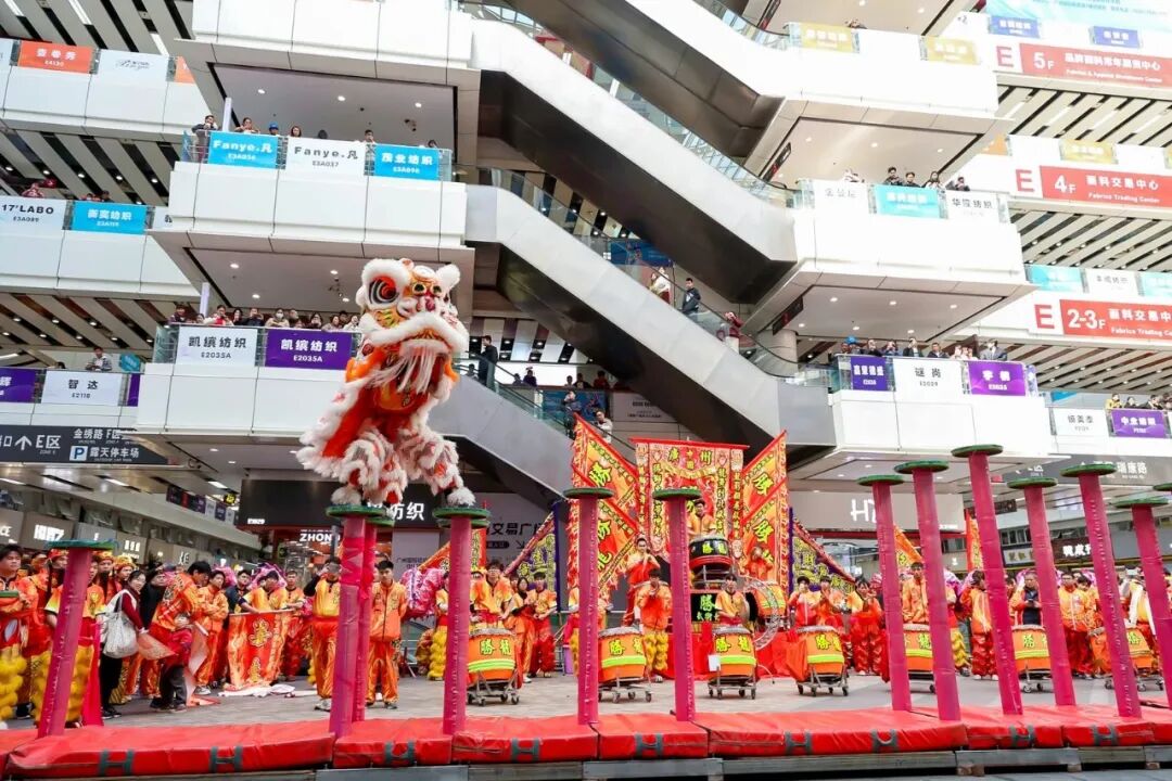 龙行四海千山秀,蛇舞九州万户新。精彩绝伦的集中表演圆满结束后,威风凛凛的神气瑞狮在财神的引领下,旋即分头奔向轻纺城内的各个楼层,为商户们逐一进行旺场采青,将客似云来、财源广进、蒸蒸日上等的吉祥好彩头传递给每一家商户。金蛇献瑞,启市大吉。醒狮每到一处,商户们皆热情相迎,他们不仅精心布置了如“旺旺大吉”鸿运阵、“生财有道”红火阵、“八方来财阵”、“一本万利”生财阵等花式采青阵,还准备了各式各样的春节主题道具与醒狮近距离互动,共同祈愿新的一年鸿运当头、心想事成、吉星高照、富贵双全。