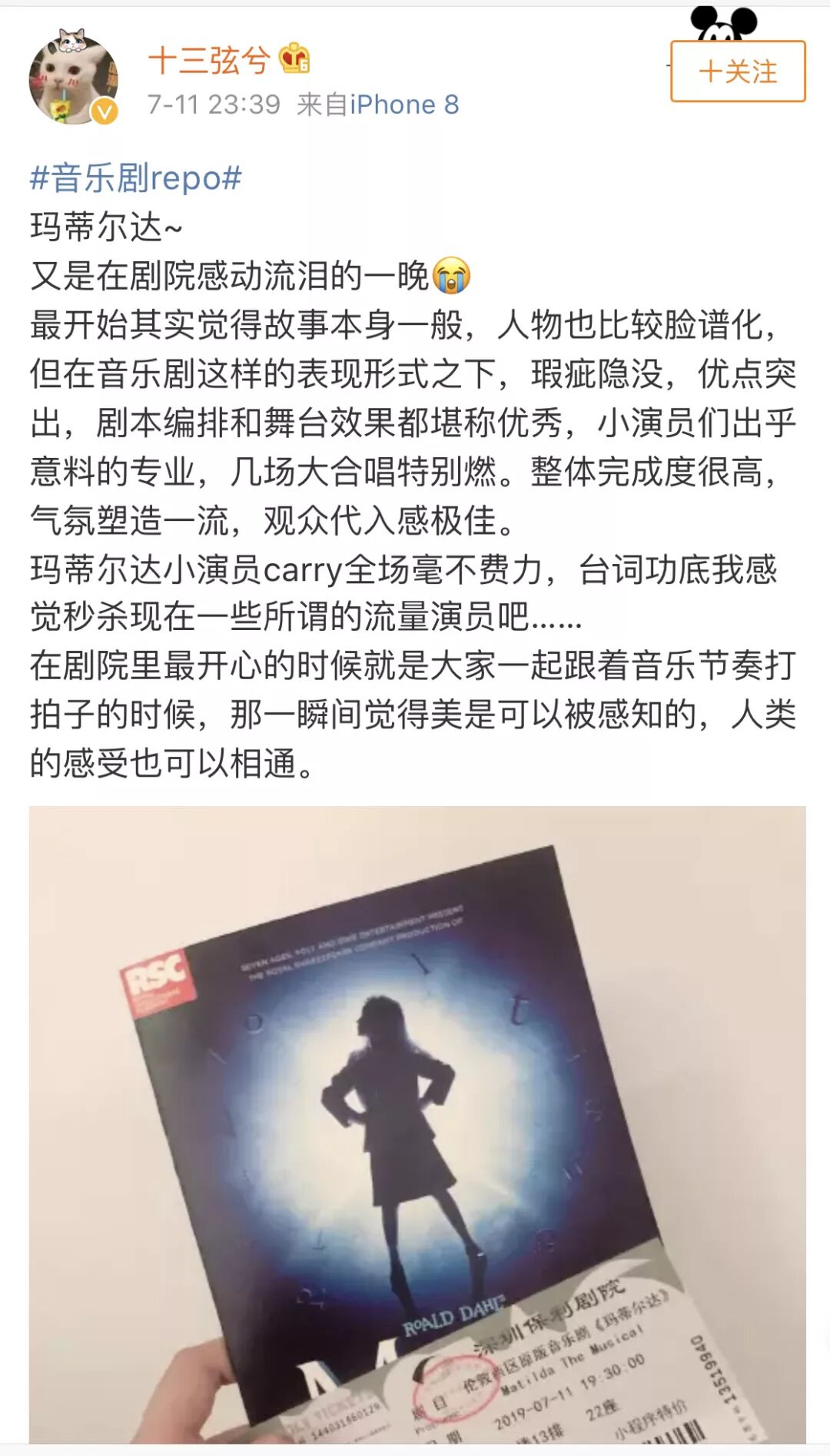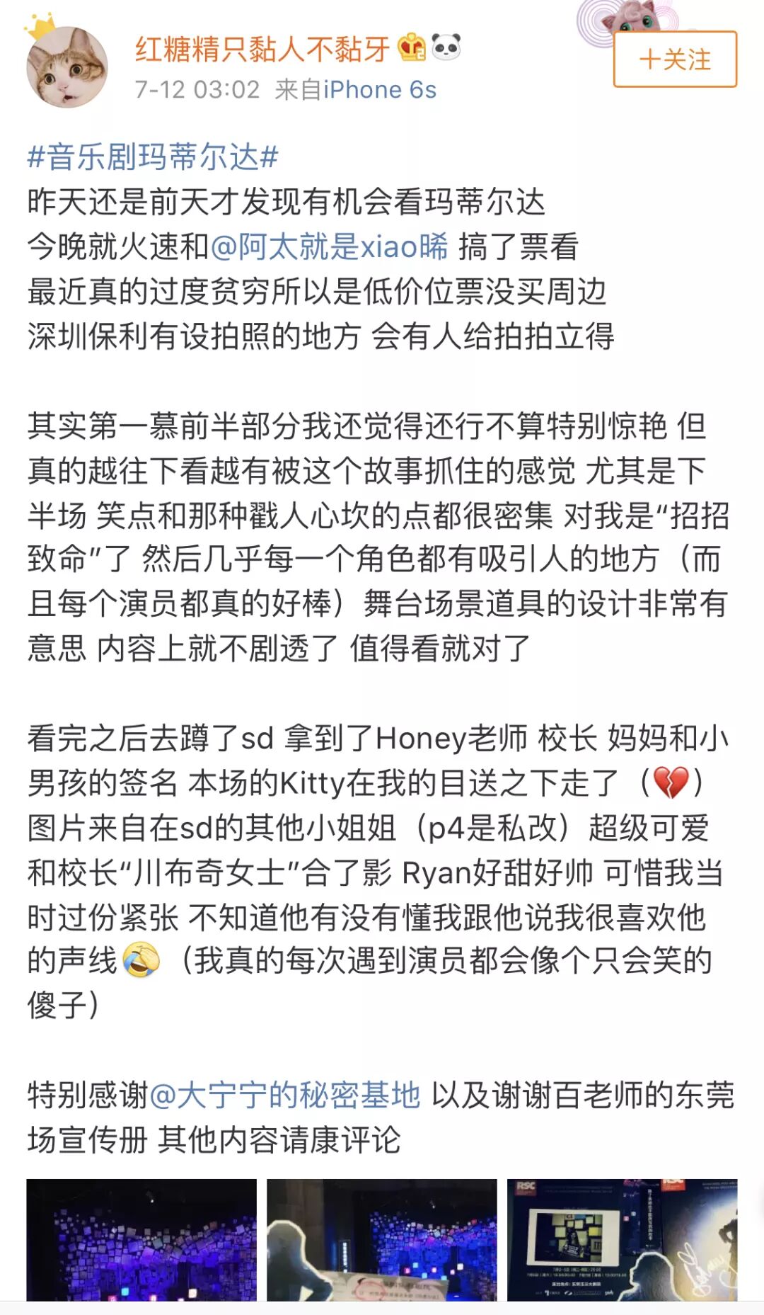 (看完首演很多观众成了小玛蒂尔达Kitty的粉丝)