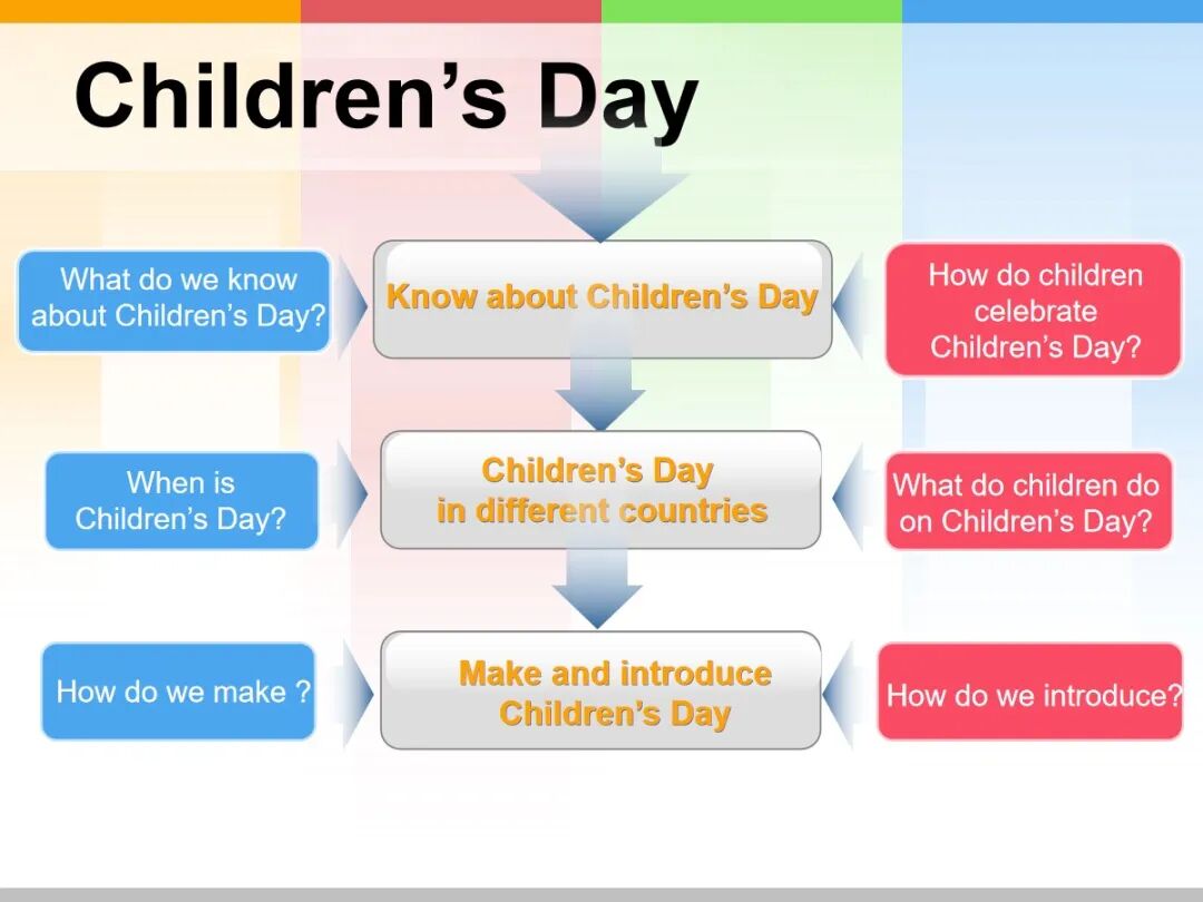 3. 进一步感受儿童节活动所带来的乐趣;进一步了解各国儿童节的不同日期,感受不同的儿童节文化。