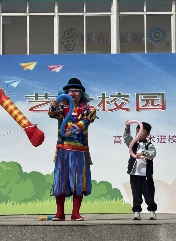 小丑们滑稽的表演让学生们笑得前仰后合,现场成了欢乐的海洋。
