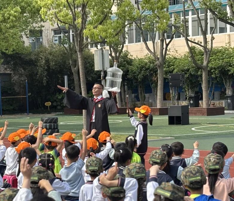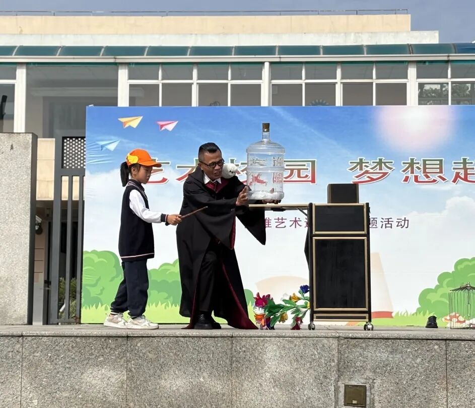 魔术表演一出场便引发阵阵欢呼,学生们紧紧盯着舞台,好奇于魔术手法与道具营造的奇妙幻象。互动环节,大家更是热情高涨,沉浸在魔法艺术的魅力中。
