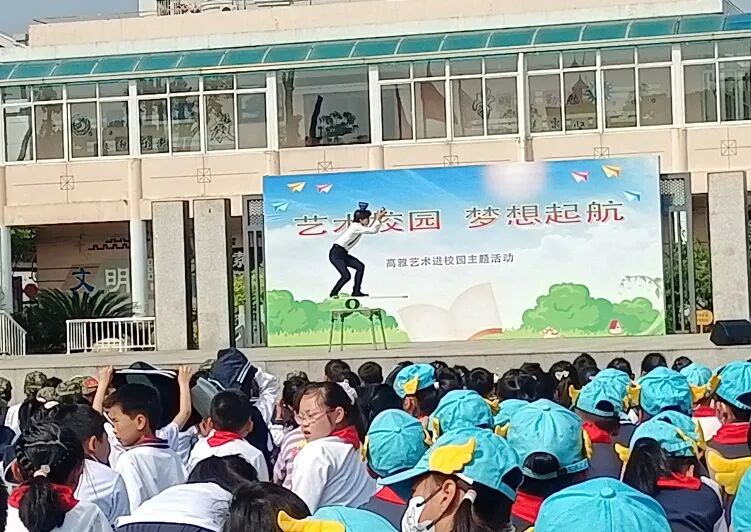 为丰富校园文化生活,弘扬优秀传统文化,促进学生核心素养的养成,2025年4月30日,东港小学举办了一场高雅艺术进校园活动,演出形式多样,有歌曲、舞蹈、沪剧、杂技、魔术等。