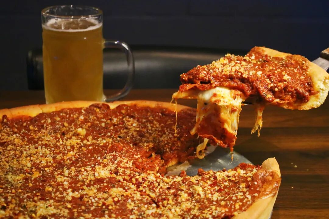 Handmade all the way, using Italian dough that rises with beer for 24 hours. The crust is thick and crispy, and the deep-dish design holds all the tasty toppings just right.