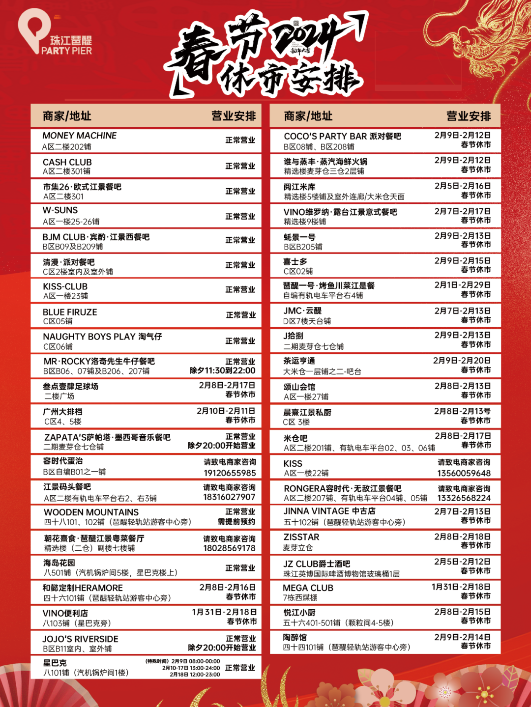 请留意园区店铺春节休市日期