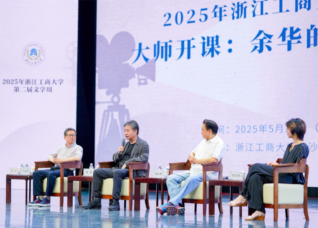 对谈中,同学们热情高涨、踊跃提问。余华和其他嘉宾围绕“文学与影视作品”“如何构建小说内核”“文学内容与形式的关系”等话题给予细致且深入的解答,“大师开课”活动在现场观众的欢呼声中结束。