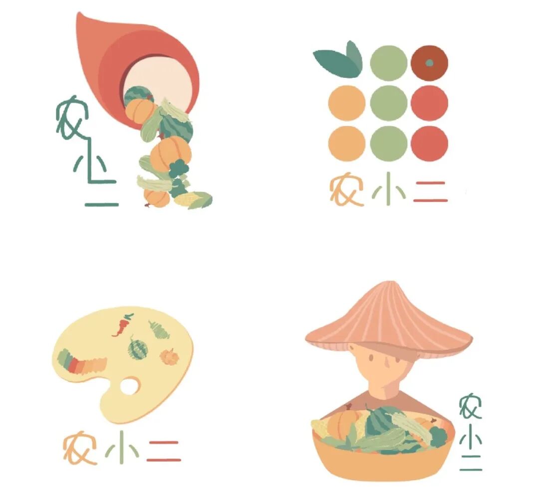 他们以村里的蔬菜品牌“农小二”为突破口,为它量身打造了萌趣十足的视觉名片。