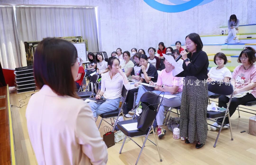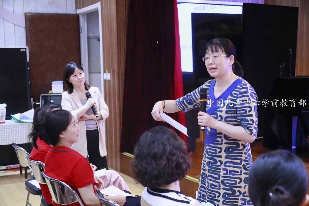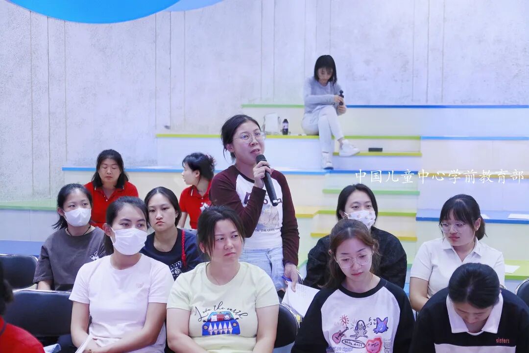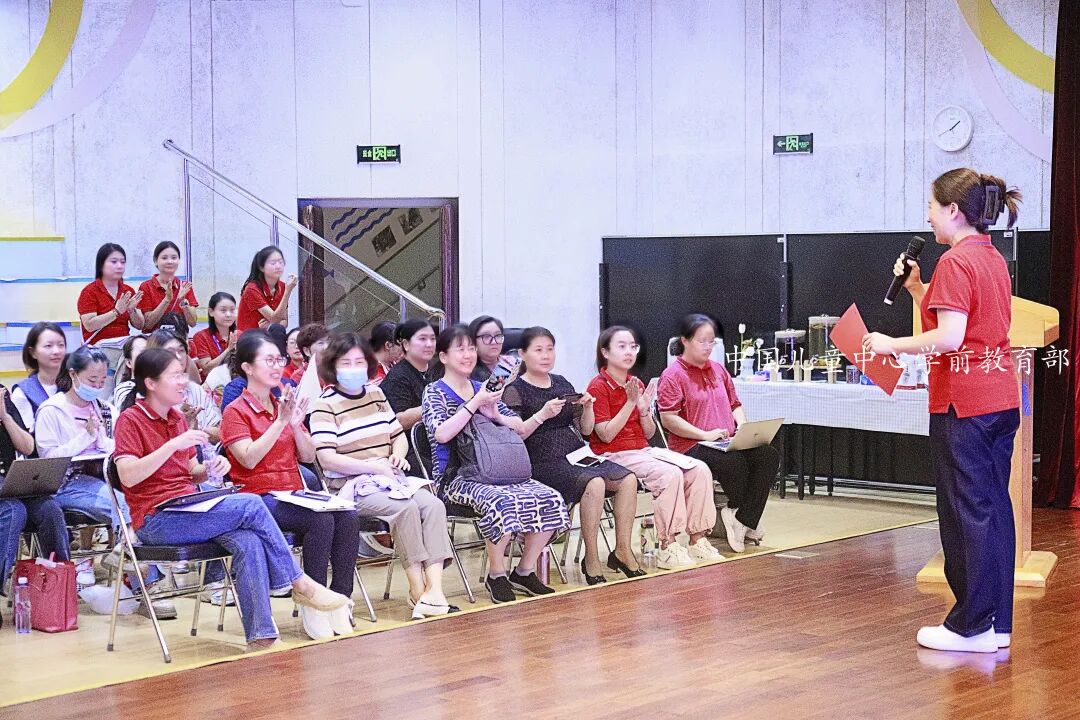 游戏是儿童的天性,游戏是儿童的权利,游戏是儿童的学习和生活。自2022年以来,中国儿童中心实验幼儿园在中国儿童中心的领导下,在我国各级专家的指导下,在西城区教育研修学院学前部的指引下,秉持“共情润心 双格发展”理念,在践行《幼儿园保育教育质量评估指南》中,打开了教师新思路、赋予了新任务:在自主游戏中,追寻游戏精神,更注重过程性的质量,更重视生活和游戏的独特价值。如今,在北京市、西城区专家们定期、不定期的悉心指导下,实验幼儿园对自主游戏的研究、探索实践,向纵深推进与发展。2024年9月13日,实验幼儿园特别邀请到北京市教育科学研究院早期教育研究所教研员史贝贝老师来园莅临指导,西城区教育研修学院副主任左晓静,教研员顾春晖、付雁也陪同参与了此次活动。在《理解儿童的游戏》的主题培训中,史贝贝老师通过案例分析、小组体验、互动倾听与现场分享等多种方式,引发教师们产生情感共鸣与深深地思考;利用图片、视频展示和生动讲述,引导老师们重视价值判断,回归儿童视角;通过对“游戏中的儿童与学习”“儿童与游戏”“游戏连续体和游戏主题的心理体验”等理论的深入学习,引导教师树立正确的儿童观、教育观、课程观;帮助教师明确一对一倾听的价值所在。史贝贝老师还介绍了实施自主游戏的四个关键要素,她通过讲解,帮助参与活动园所的老师们结合本园实际,明确课程方向和实施路径。她建议老师们要充分挖掘每一位儿童的发展潜能,让孩子们在自主游戏中,自主学习与发展。