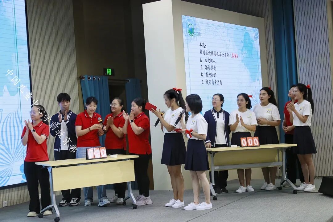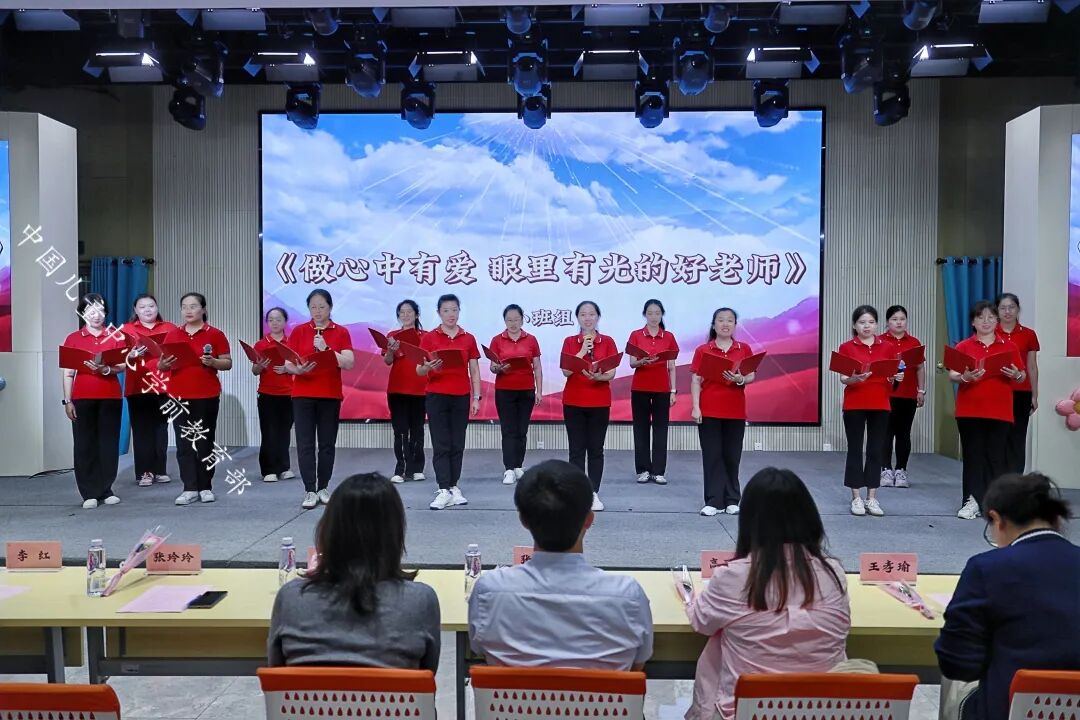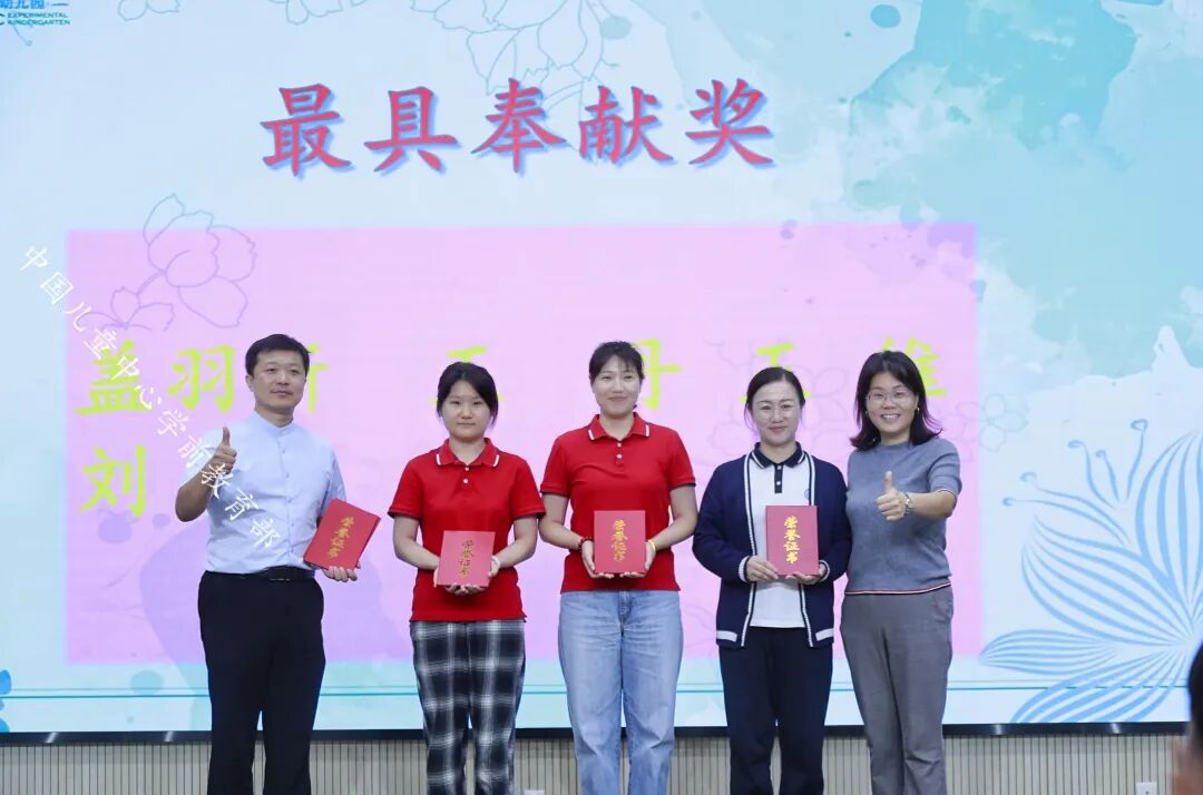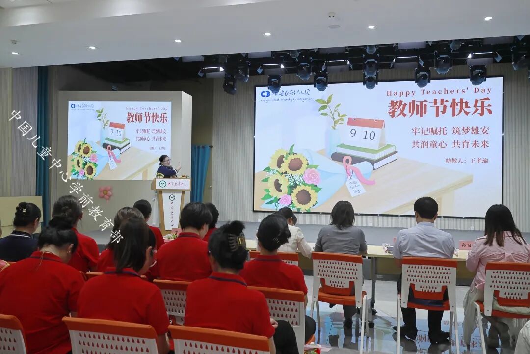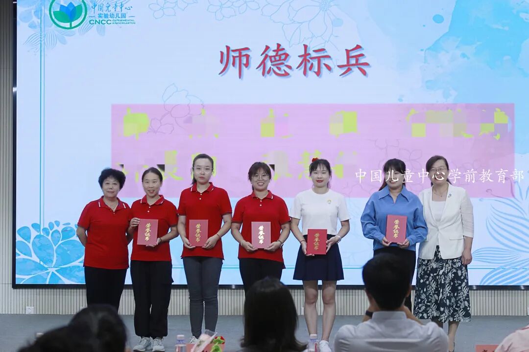 老师们以“师德演讲”“表彰先进”“教师展示”“党风党纪、师风师德知识竞答”等丰富多彩而意义的活动,表彰在“大教师观”“共情润心双格发展”“儿童友好”理念下涌现的先进典型,展现教师风采,弘扬教育家精神,庆祝本届教师节。张慧敏老师饱含深情地说,教育是有温度的,这源于老师对孩子的关爱。她认为,教育的温度主要体现在这些方面:清晨,当孩子们入园时,老师用温暖的笑容、给幼儿一个大大的拥抱,让宝贝儿感受到幼儿园像家一样温暖;当宝贝儿在游戏中摔倒时,老师第一时间冲过去,扶起宝贝,为宝贝擦去泪水,给予她(他)安慰和鼓励;当宝贝儿遇到困难时,老师耐心地引导,帮助宝贝找到解决问题的方法。在幼儿的成长过程中,老师们始终陪伴在他们身边,用爱为他们撑起一片蓝天。张老师说,教育的温度还体现在老师对孩子的尊重上,每个孩子都是独一无二的个体,他们有自己的想法、兴趣和爱好。在工作中,老师要尊重孩子的个性差异,因材施教,让每个孩子都能在幼儿园里得到全面而富有个性地发展。老师要认真倾听孩子的心声,尊重孩子们的选择,让他们在自由、平等的氛围中快乐成长。在三年的幼教生涯里,张老师对幼儿教师的师德内涵有着自己的理解。张老师说,幼儿园老师不仅是轻声细语巧安慰,蹲下交流情更切的敬业奉献,教师还应该是为人师表,带着爱、尊重给孩子,有教育艺术的撑伞人。她说,在从事幼教工作中,师德被具化为幼儿及家长的“信任”,好教师应该始终与幼儿保持着良好的师幼关系,通过观察、倾听,去读懂幼儿,走进幼儿的内心世界;师德被具化为“共情”,共家长之情,理解和思考家长所盼、所急,用心用情地守好家园阵地。张老师表示,在今后的教育实践中,她将以教育家精神为引领,辛勤耕耘在幼教事业这片沃土,用贴心服务幸福更多儿童。郝老师说,作为幼儿园教师要深知肩负着“幸福孩子一生”的使命,要做好幼教工作,助力儿童全面发展,需关注孩子年龄特征、个性差异、兴趣爱好等,培养儿童身心和谐发展,还得处理好家园关系,这并非易事。郝老师回忆说,曾有一位家长因孩子性格内向、家长对幼儿园和老师缺乏了解而心存疑虑。老师们就用心观察、研究分析他们家的基本情况,主动了解孩子和家长需求,发现孩子的闪光点并及时反馈给家长,注重沟通方法与技巧。一分耕耘一分收获,从此后,家长就积极参与到幼儿园活动中,支持配合老师的各项工作,老师们备受鼓舞。郝老师表示,她将继续努力提升自己的专业技能,培养幼儿养成良好的生活和学习习惯,更好地开展家长工作,牢记初心使命,为孩子们的成长贡献自己的智慧和力量。图片说明:中国儿童中心实验幼儿园常驻雄安幼儿园的部分老师获得嘉奖(有的常驻老师因在雄安坚持工作,没到会议现场)。