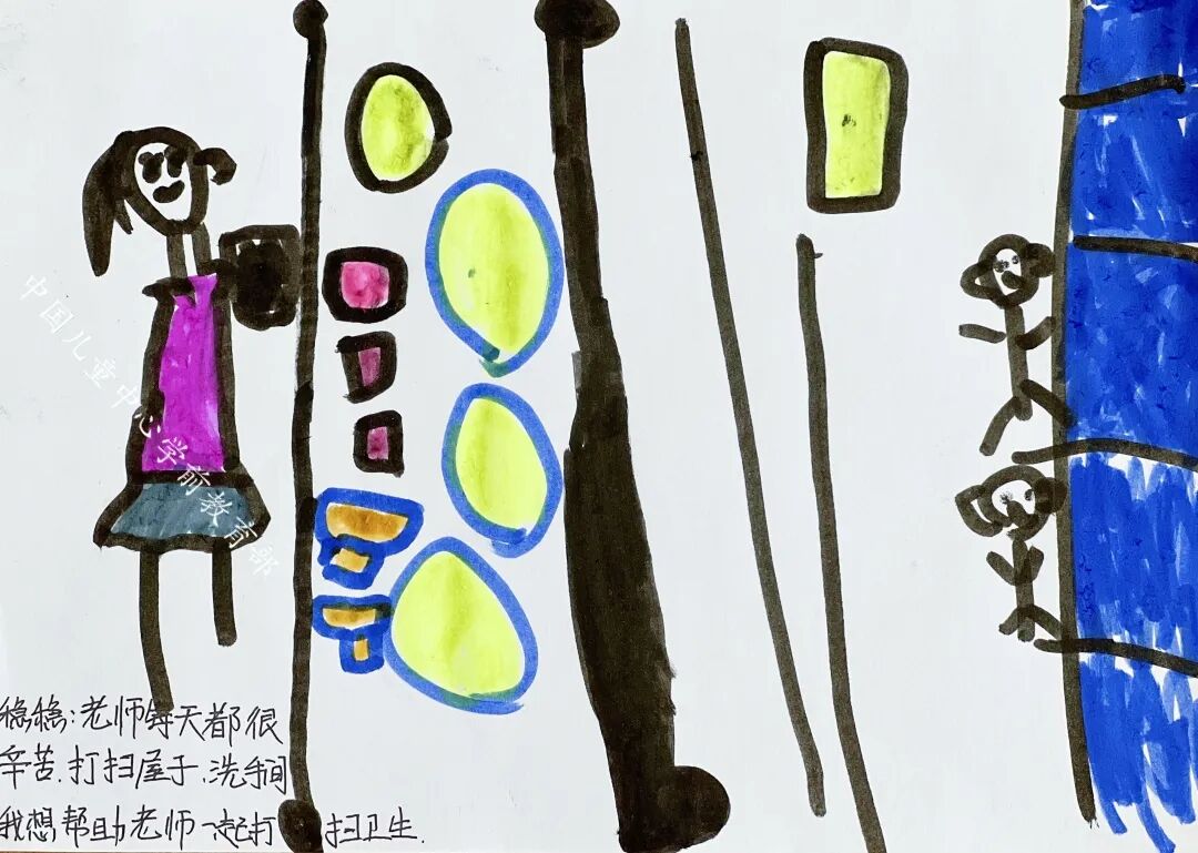 团团:老师每天照顾我们,怕我们受伤,提醒我们注意安全,很辛苦。