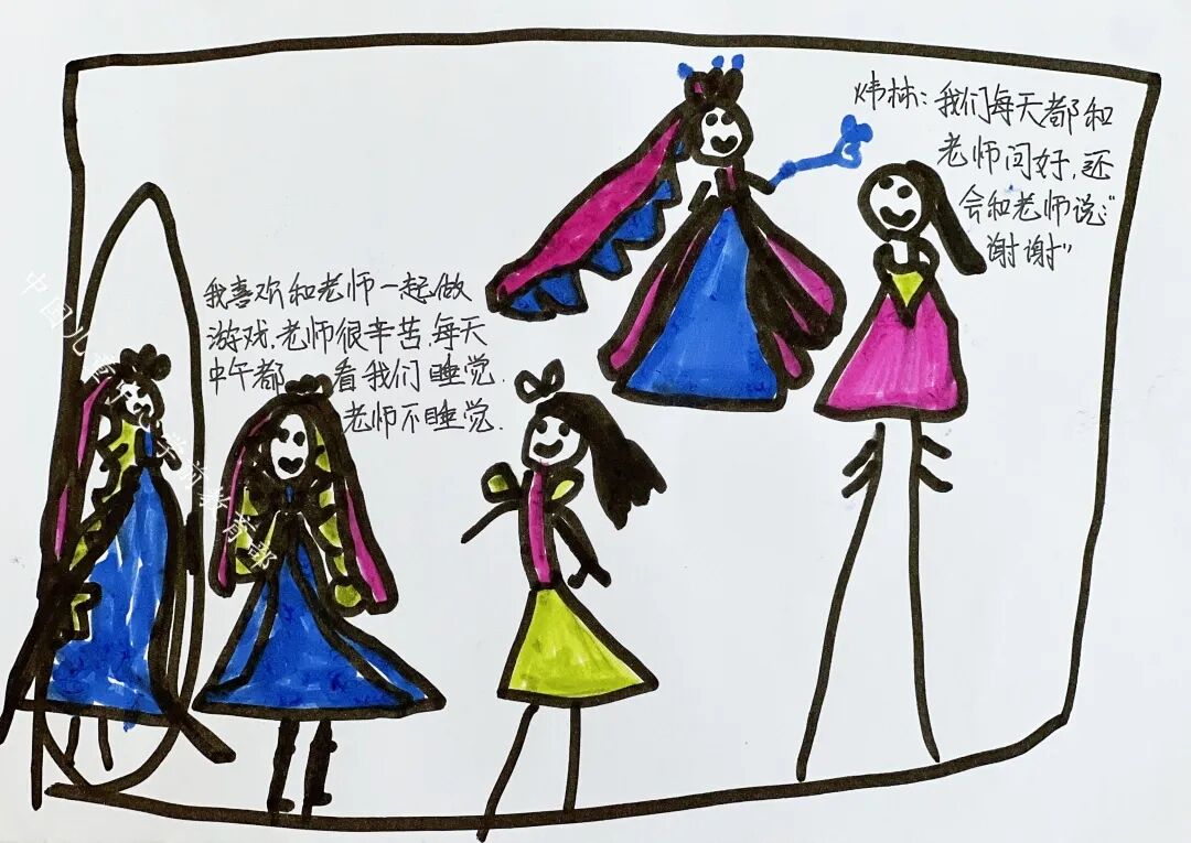 炜林:我喜欢和老师一起做游戏,老师很辛苦,每天中午都看我们午睡。