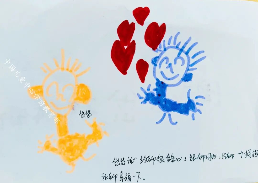 达达:我要给老师一个大大的拥抱,老师很辛苦,总是陪我们一起玩。
