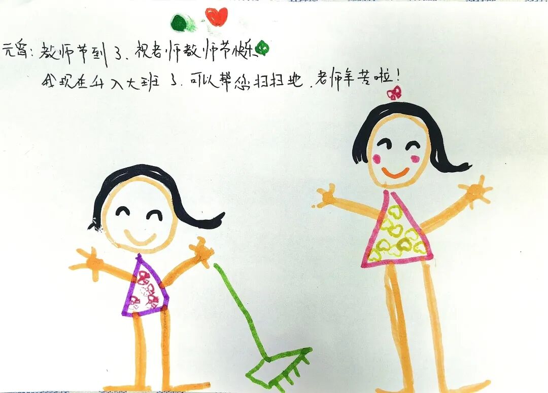 元宵:教师节到了,祝老师教师节快乐!我现在升入大班了,可以帮老师扫扫地,老师辛苦了。
