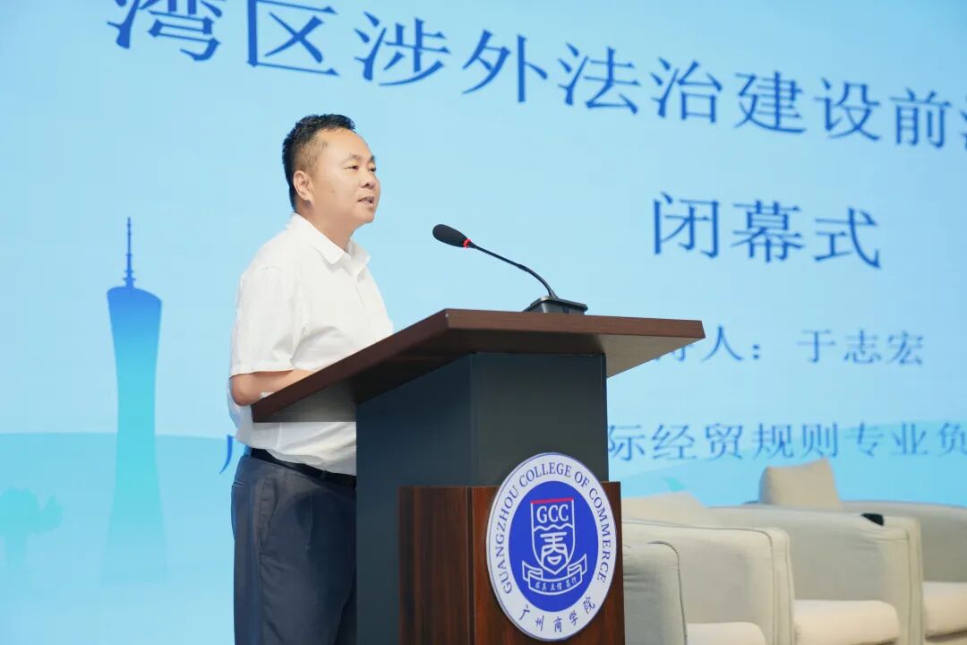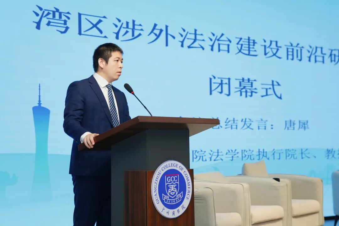 法学院执行院长唐犀作总结发言,他表示,本次研讨会内容丰富、精彩纷呈,是一场高层次、高水准的学术交流盛会,不仅加深了学术界与实务界之间的交流合作,也进一步激发了涉外法治领域的研究热情与创新活力。与会专家学者围绕学界业界前沿热点问题,共商涉外法治建设良策,分享真知灼见,为湾区涉外法治建设注入了新动能,为我校涉外法治人才培养提供了新思路,为打造涉外法治高地点燃了新引擎。与会者纷纷表示,将把研讨会中的收获转化为推动涉外法治建设研究与实践的动力,共同为完善中国特色社会主义法治体系贡献力量。