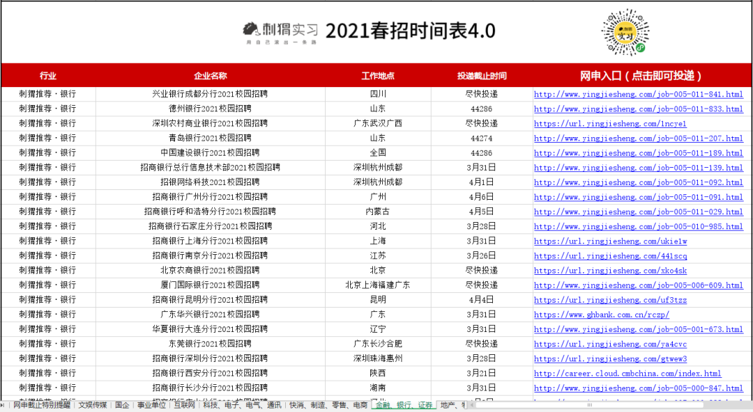 1000+各行业企业春招网申链接+起止时间+