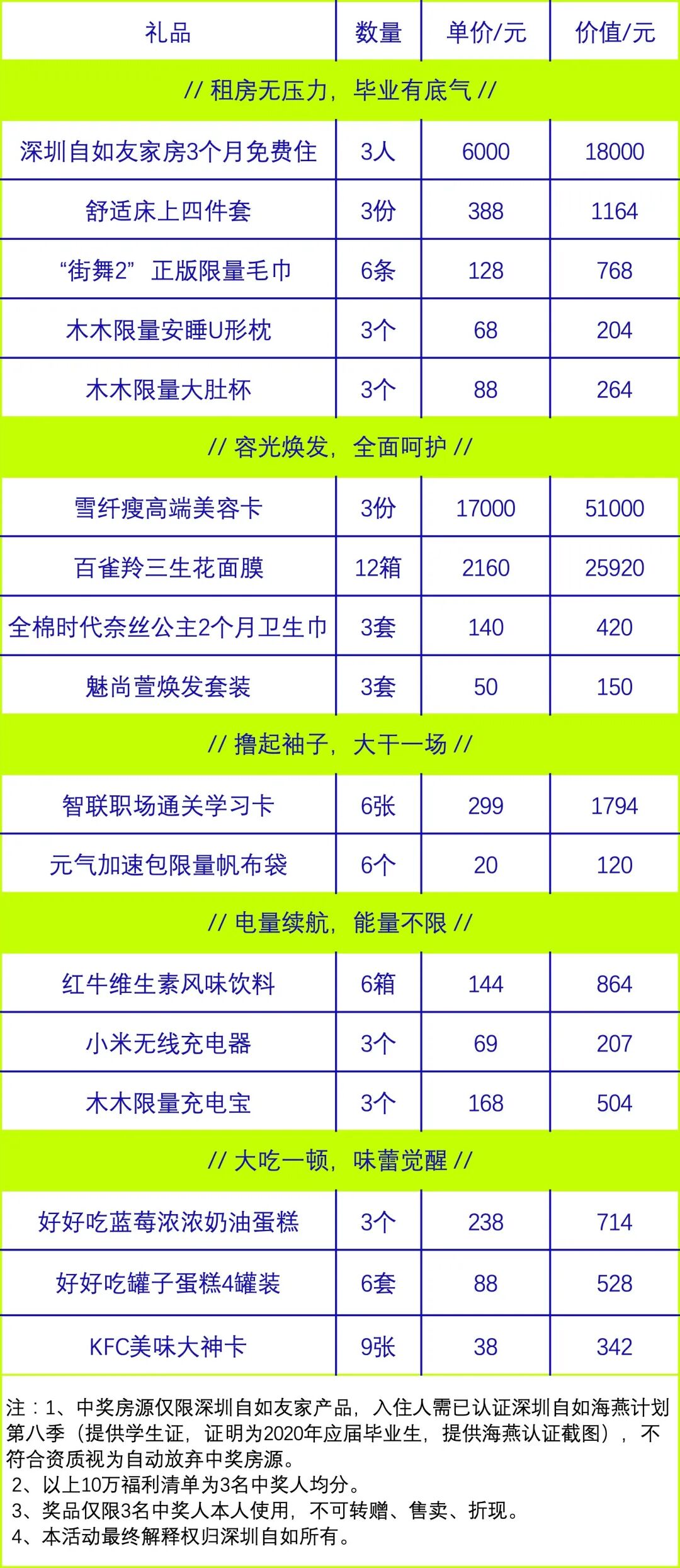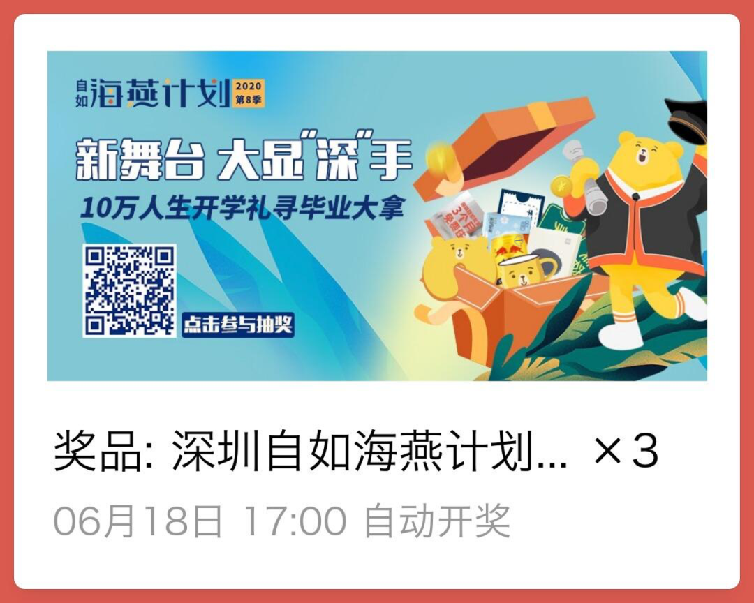 ②本次大奖由深圳自如提供,福利仅面向成功认证海燕计划的2020应届毕业生;