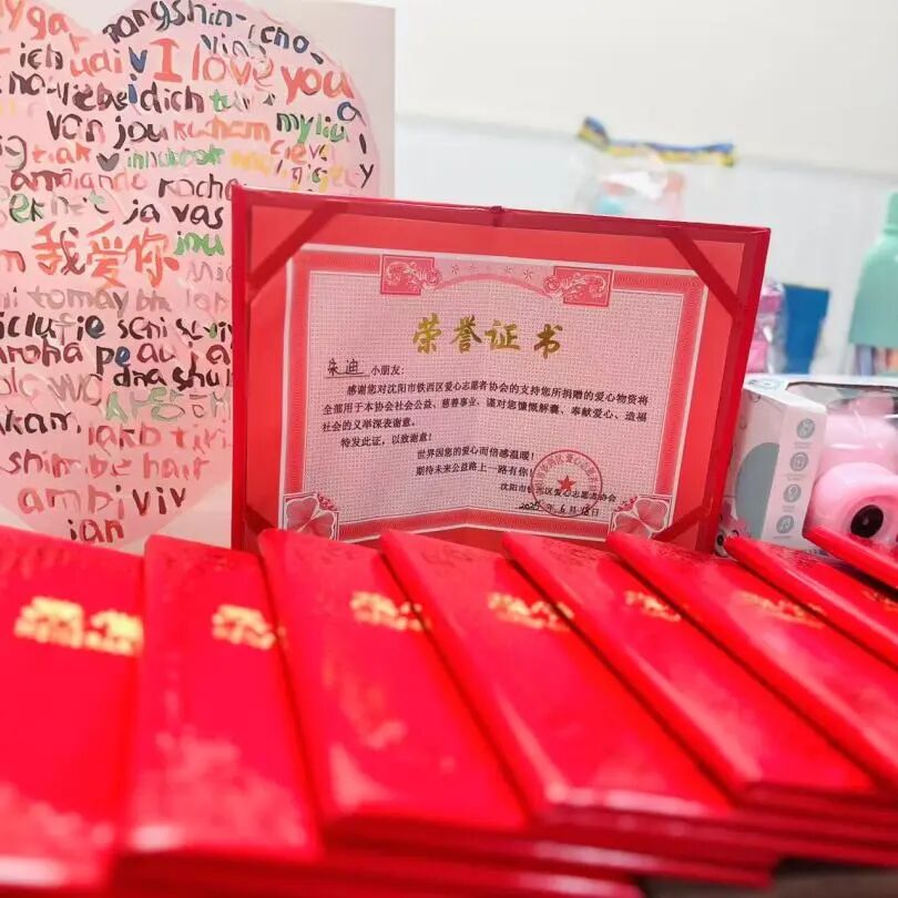 为了鼓励孩子们的爱心行动,合作机构——沈阳市铁西区爱心志愿者协会特为每位参与的小朋友颁发了荣誉证书。这不仅是对孩子们爱心行动的认可,更是对他们成长路上的一次珍贵鼓励。