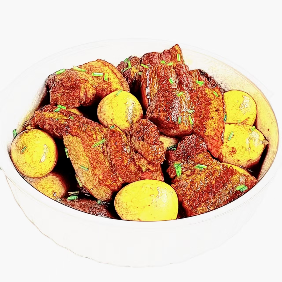 燕麦饭、鹌鹑蛋烧肉、茭白炒鸡丝