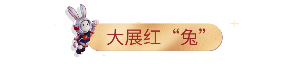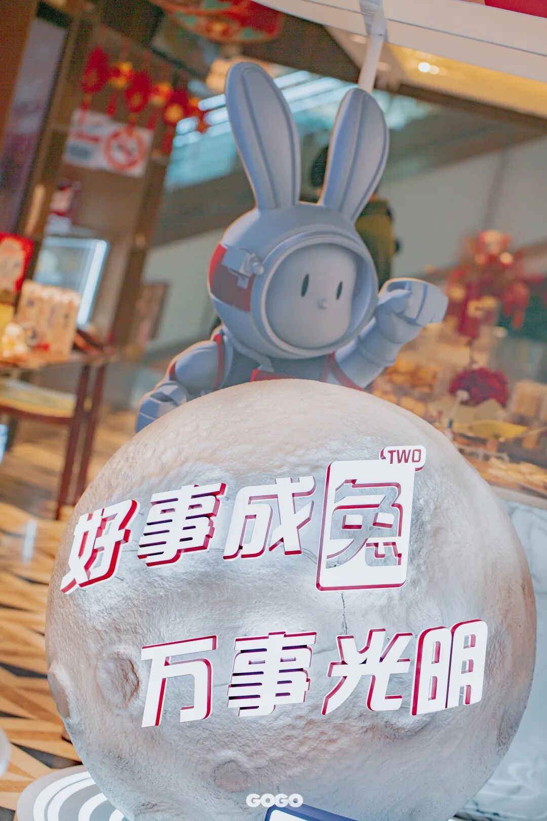 万里箭飞冲,玉兔更腾跃。首先映入眼帘的是这只火遍全国,还火到了天上的探月吉祥物《贺岁系列太空兔》。