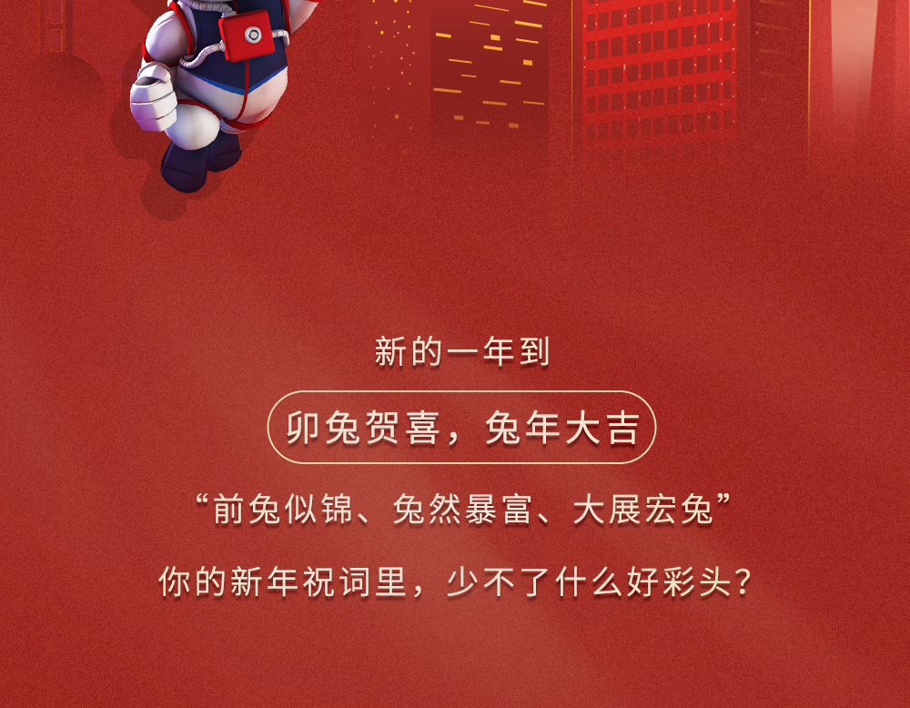 靓眼的红蓝白配色极具潮流属性,来和实打实的“顶流兔”get新春合影,贺中国航天成就,迎2023兔年鸿运。萌趣相随,欢迎新禧!