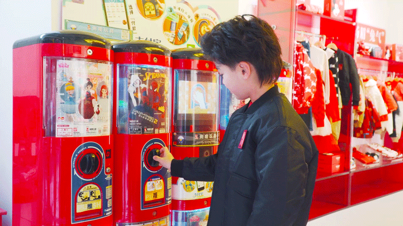 左手边一排排的扭蛋机也是小朋友们的最爱,转动旋钮收获扭蛋机的快乐。