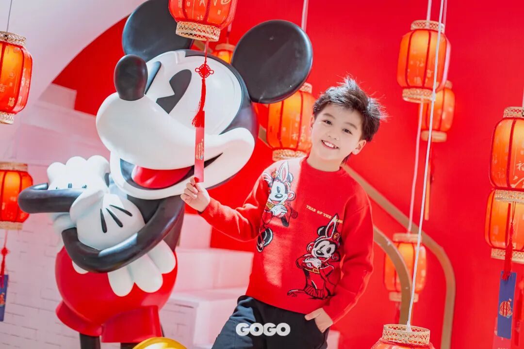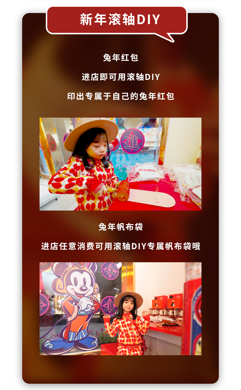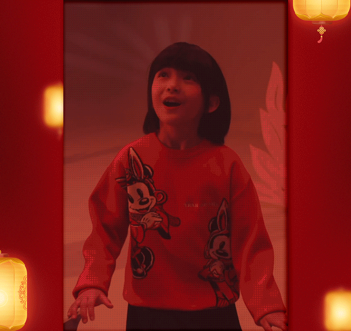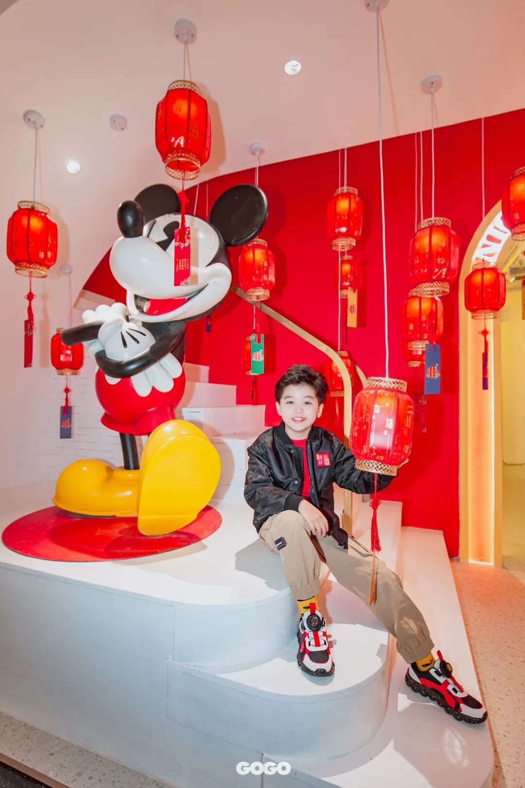 玩趣空间设计,沉浸式感受新年国潮的热闹氛围,戴着兔耳朵的米奇正向我们作揖拜年呢!