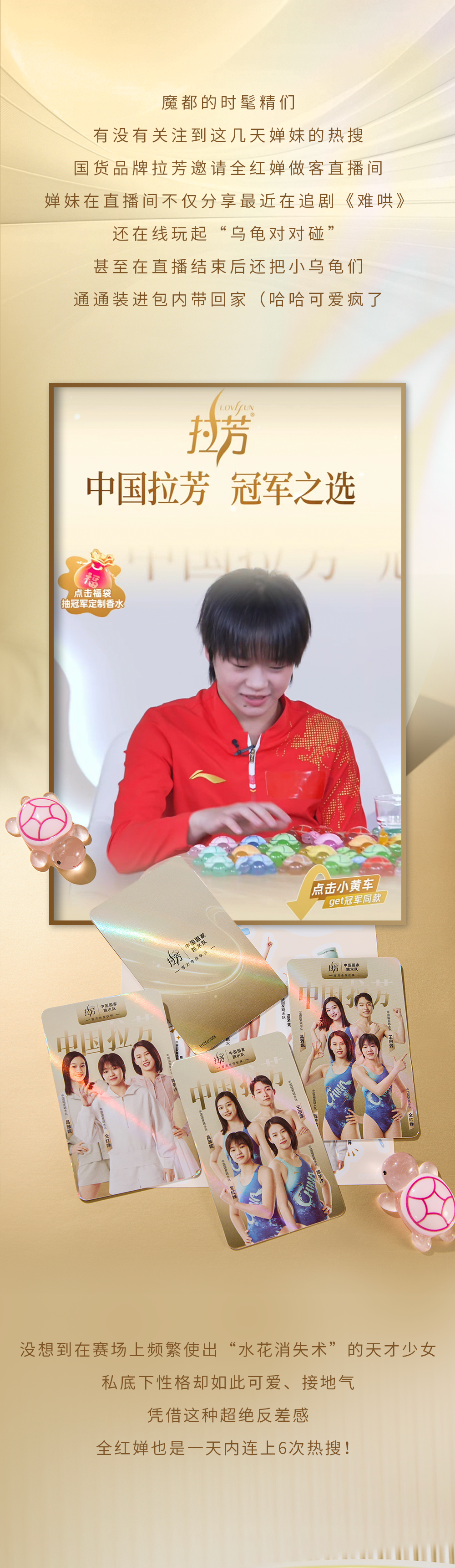 前几天全红婵做客拉芳直播间,拉芳也是早早给全红婵准备了“乌龟对对碰”环节,全妹和冠军团秒破冰,玩得尽兴的同时也萌翻了广大网友们!