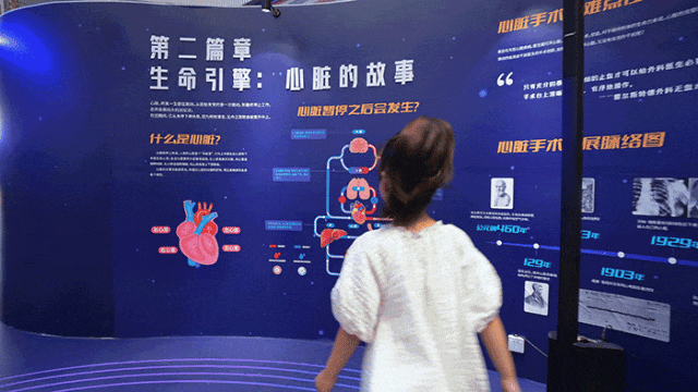 顺着展览动线,也是沿着身体的脉络,由头至心接着逛展。走进“第二篇章”,眼前的空间将带领观众了解“心脏的故事”。
