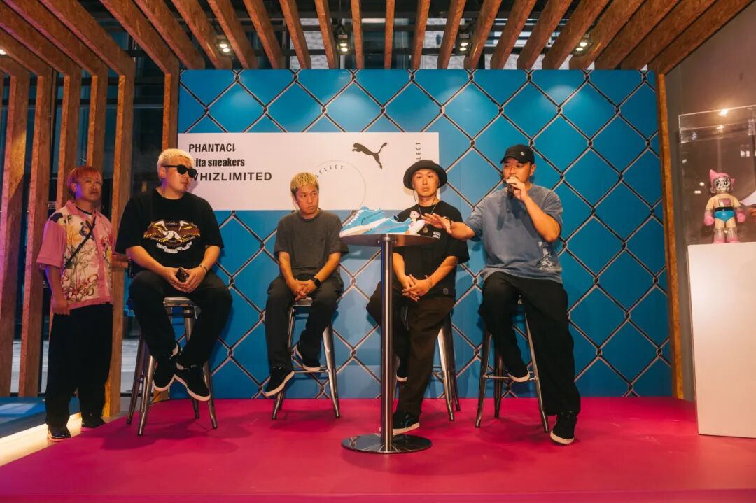 在PHANTACi上海外滩BFC旗舰店举行了四方联名SUEDE鞋款发布活动。在活动中,PHANTACi品牌主理人蒋先威与本次联名创意伙伴国井荣之、下野宏明齐聚一堂,共同发起了一场精彩的座谈会,分享了此次联名合作的灵感来源、设计理念以及对街头文化的独特见解。