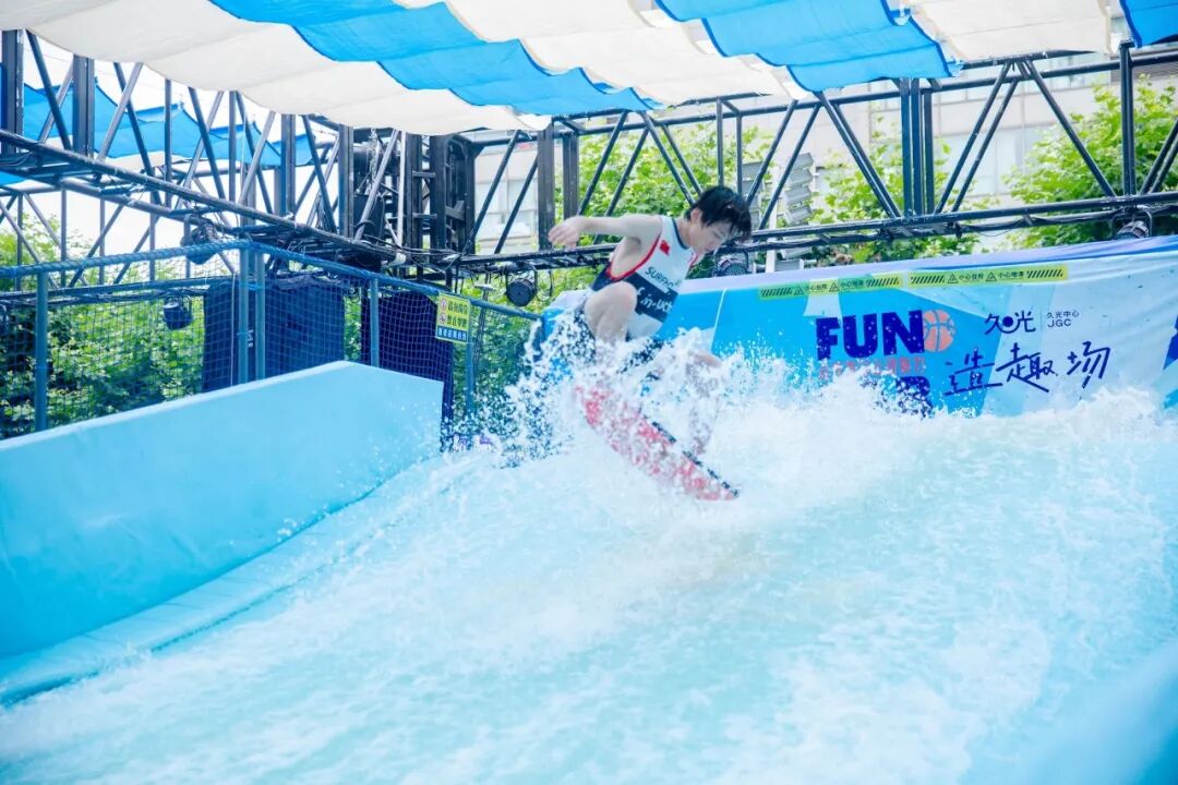造趣场冲浪水世界就是其中标杆项目,超1000M2的水上世界由专业移动平地冲浪模拟机、6米高急速滑梯以及大型水上挑战赛道等丰富设施组成。消费者们可以与奥运赛事同步,挑战冲浪等水上运动。活动将会持续至9月10日。