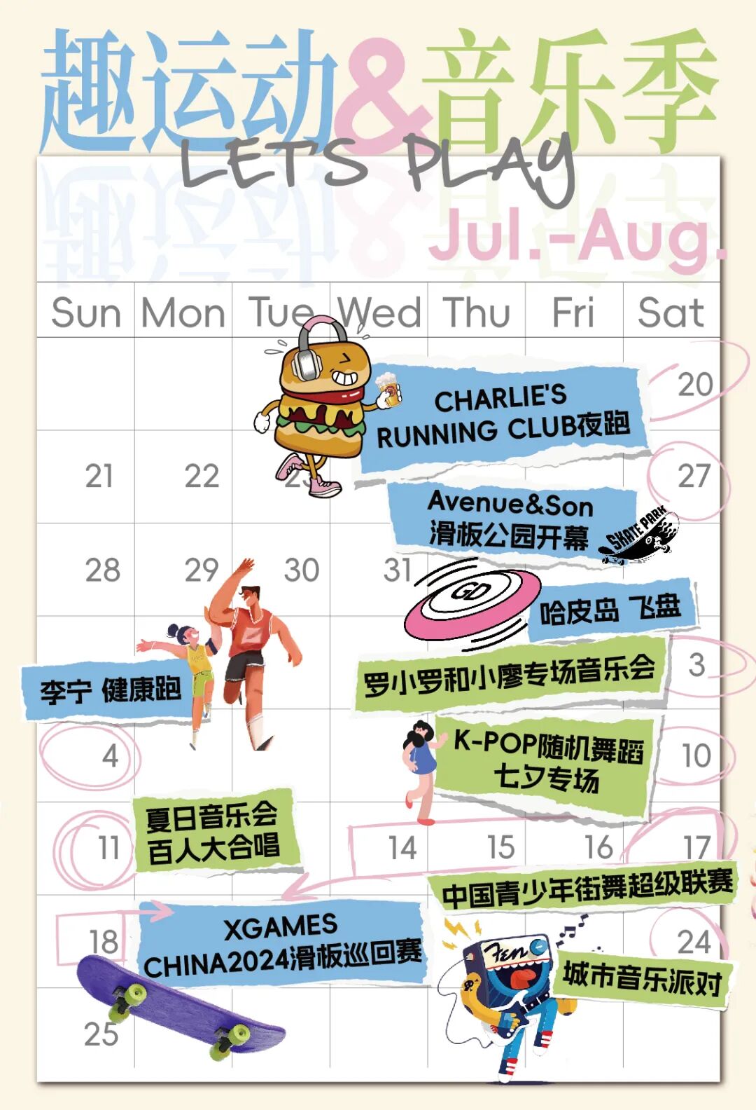 其中,“趣运动”系列活动将联合极限运动头部品牌X-GAMES和国内原创滑板品牌Avenue&Son,邀请各路高手共赴滑板盛宴;“音乐季”系列活动更有百万粉丝网红歌手、创造营练习生、独立原创音乐人等嘉宾现场助阵,共赴夏日音乐盛宴。