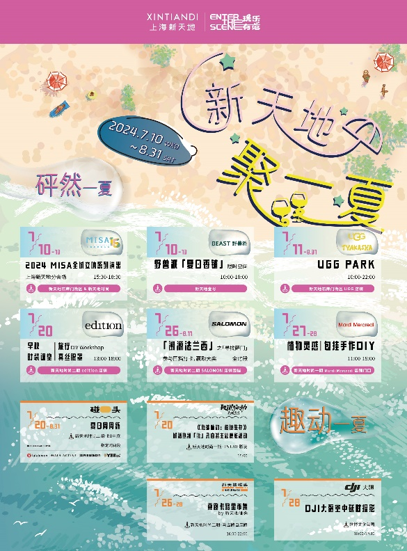 随着首届“上海之夏”国际消费季的盛大开幕,上海新天地以“新天地,聚一夏”为号角,将在未来两个月的时间内,携手众多域内品牌商户,汇聚多元社群,打造包括音乐、摄影、运动、潮流等板块在内的一系列精彩纷呈的活动。