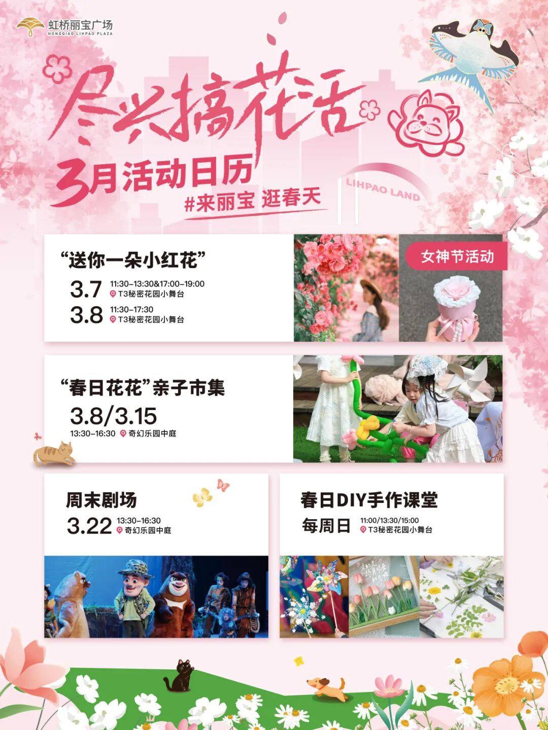 3月魔都玩耍好去处,如何“玩”转春天?跟随虹桥丽宝乐园,一起「尽兴搞花活」~解锁你的春日生活新鲜感!