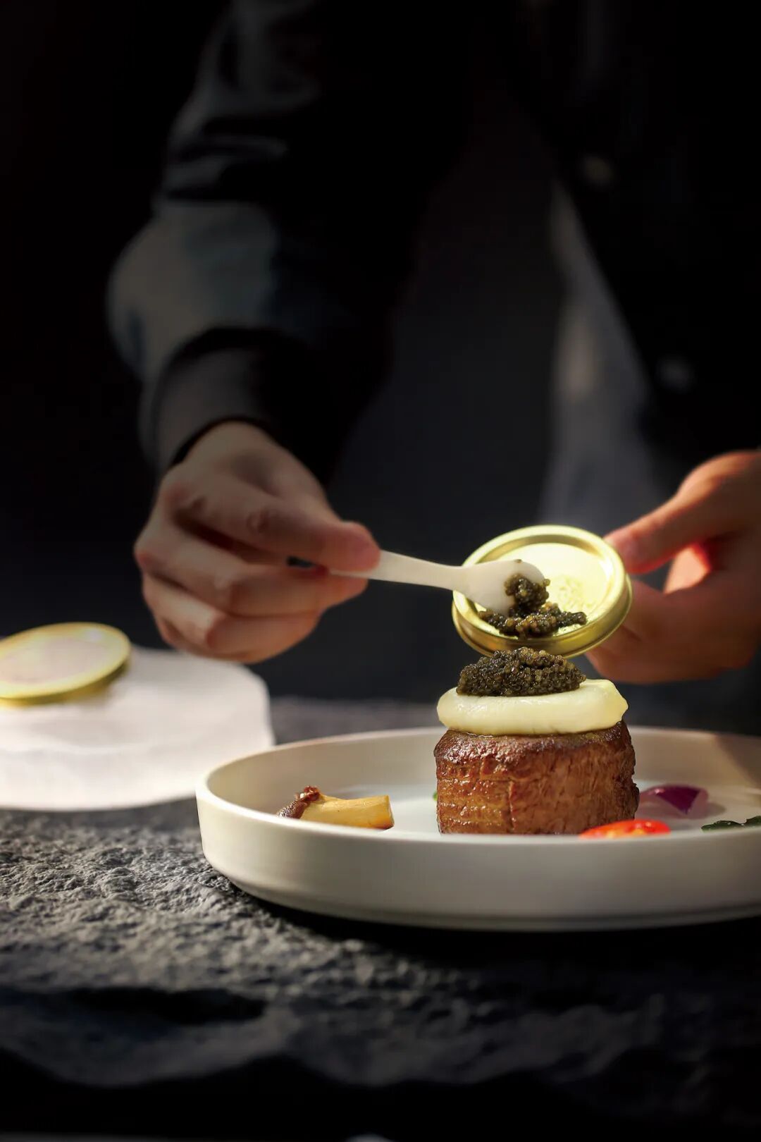 将鲟鱼子酱与和牛菲力牛排融合,打造治愈系盛宴。被誉为“黑色黄金”的鲟鱼子酱细腻滋润,每一颗都如宝珠般珍贵; 而和牛菲力牛排则以嫩度闻名,几乎没有筋膜和脂肪,口感柔软细腻,如暖心的拥抱。 在王品,当整整一盒鲟鱼子酱遇上和牛菲力牛排,每一口都充盈着独特的奢华与精致感。