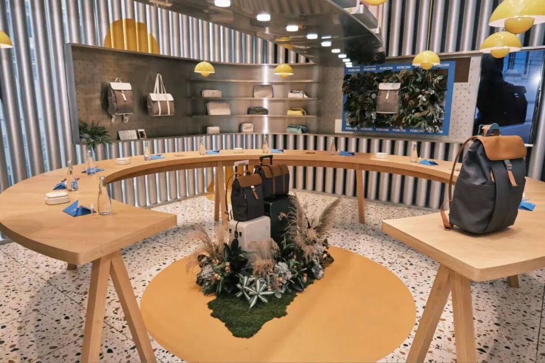 其他LOEWE罗意威标志性作品包括黑铁马天尼桌和一张展现品牌精湛皮革工艺的绗缝蓬松长凳。天花板悬挂着野口勇的精致和纸Akari E吊灯,六张西班牙定制羊毛手工地毯静谧覆于精品店地面之上,其图案重现了英国纺织艺术家John Allen明媚田园风格的挂毯作品,包括《奥克尼夕景》、《白粉笔勾绘的巨人》和《罗斯利的植物丛》。