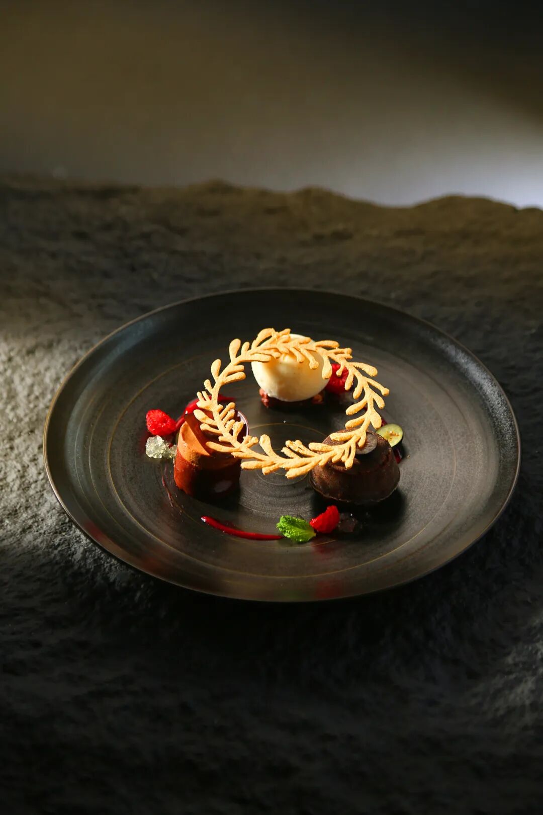 经典回归,著名法式甜品之一。轻轻切开轻盈而略带嚼劲的外皮,如丝般顺滑的巧克力流心便缓缓流淌而出,搭配香草冰激凌,既浓郁又清新,每一口都充满惊喜,为您带来满满的甜蜜与幸福。
