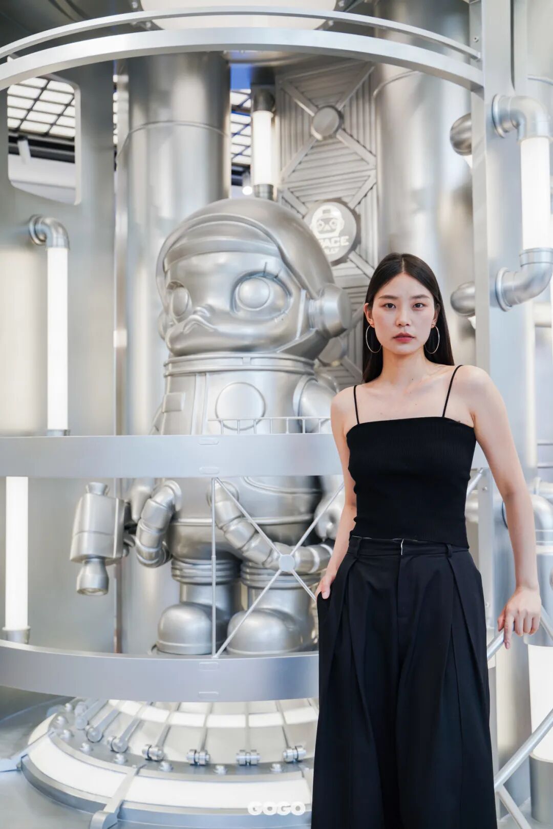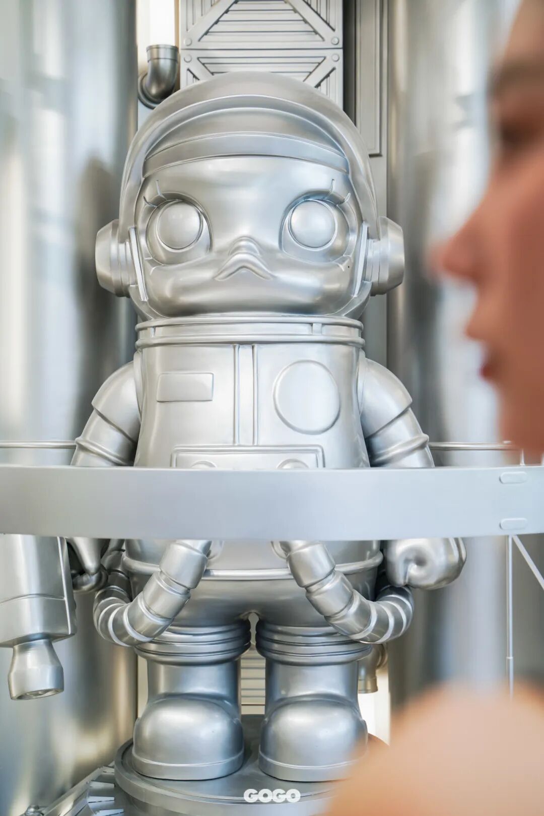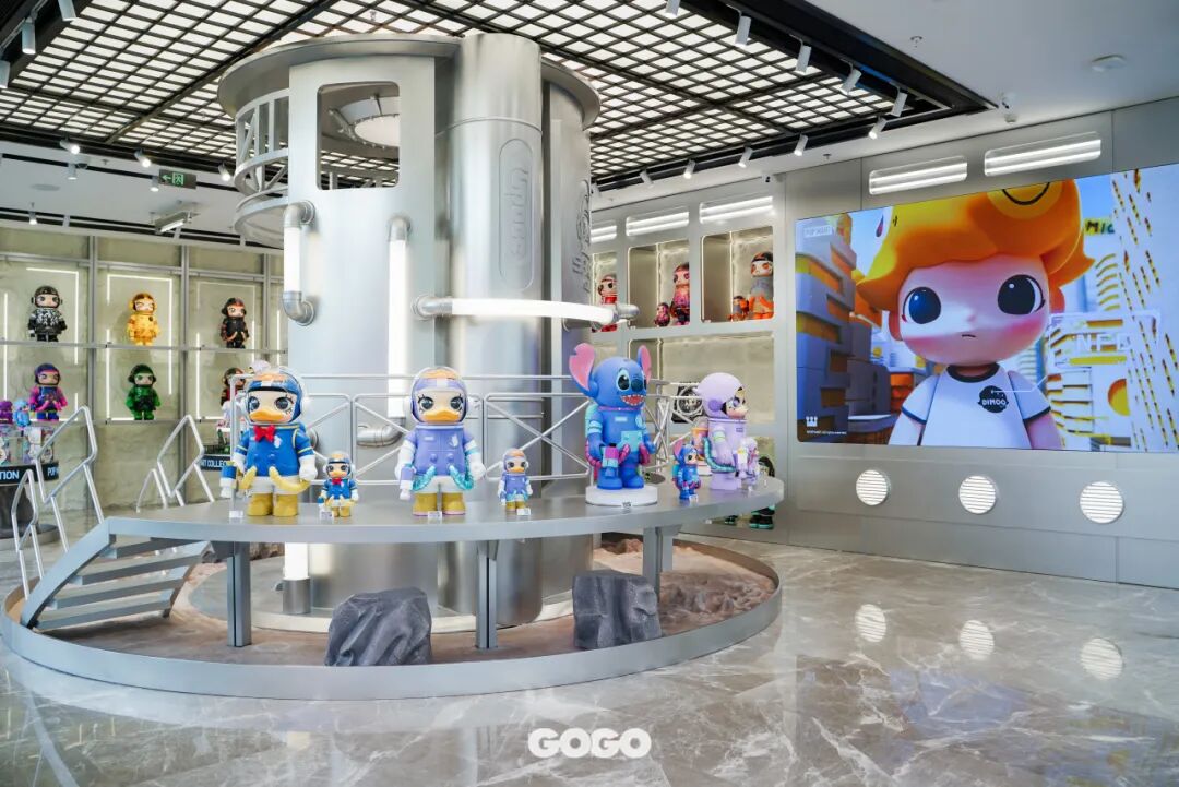 步入门店,视线就被巨型MOLLY雕塑吸引,通体散发的⾦属光泽极具未来感,其标志性造型在前卫艺术的加持下,显示出“潮流使者”的隐藏身份,向你发出进店信号。