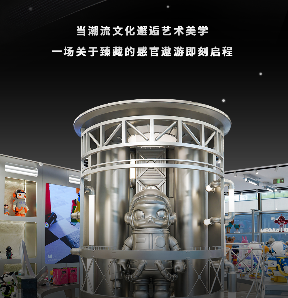 展柜、橱窗、潮玩与宇宙置景融为一体,成为时空切片里的臻选瞬间。MEGA COLLECTION系列的经典艺术家联名、非遗合作、潮流品牌共创等高光臻品悉数呈现,不自觉漫游驻足、沉浸挑选,这是臻藏店给予你独一份的仪式感。
