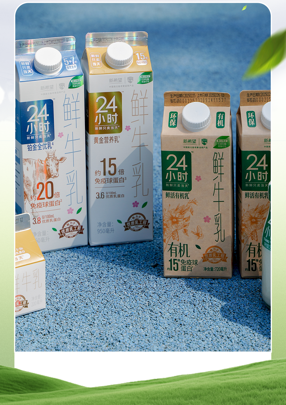 *新鲜只卖当天是指24小时鲜牛乳只售卖上市当天。