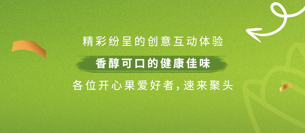 亮绿渲染满屏的春意,精心布置的开心果元素乐园,一眼就成为视线焦点,空气中弥漫的坚果香气,吸引着来往的朋友加入这场开心之旅。