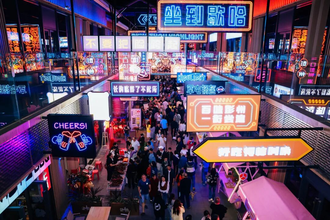 进入一口彭州美食街区,趣味语言的霓虹灯牌加持,呈现赛博朋克风格的沉浸空间,彭州特色、人气多类美食汇聚,沉浸一场味蕾的狂欢盛宴。