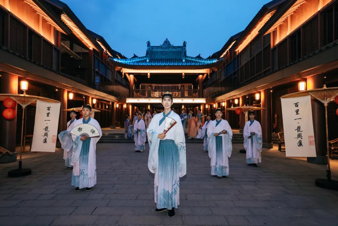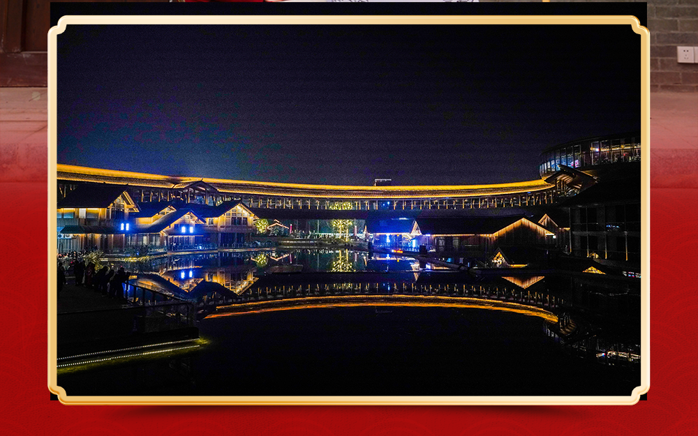 古刹之下,沉浸别具一格的年味之旅,似乎将千年时空重叠,来了一场古今对话。百里一·龙兴集精心打造24小时开放的人文景区式商业街区,文、商、旅、产跨界融合发展,构建全新的商业范式,形成了“吃住行游购娱”全域全时段的空间消费体系。