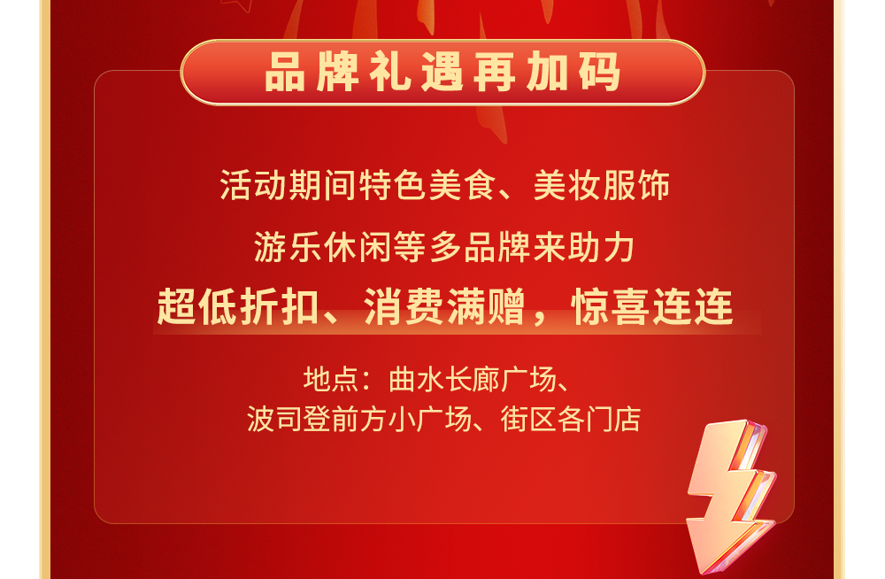 烟火集、潮流集、不夜集、文化集、产业集、禅意集,六大创新场景展现与众不同的“古寺新集”。和gogo一起进入街区,组个“彭友”局,解锁超多惊喜玩法~新春臻献BIG SALE全场5折起、消费满额豪礼随机大放送……一连串的超值优惠组团来袭,给足你惊喜!