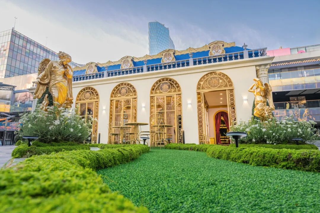 FILA ICONA三里屯太古里旗舰店汲取意式风格建筑为灵感,高空穹顶设计再现近两千年历史的罗马万神殿的美学典范。精巧的拱门造型、错落的砖体结构与自然机理打磨,打造历史文化与现代空间交织的意境。围绕高品质服务理念,店内囊括健身、高尔夫、网球及户外系列等专业运动产品,涵盖多个联名系列及全球限量专供系列,以全场景式分区满足消费者各种需求。从门店整体风格设计,到门店发售的联名以及限量专供货品,均体现了FILA意式运动美学精髓。而此次联合艺术家进行门店外立面焕新升级,结合凡尔赛宫最具代表性的具象符号太阳王及巴洛克装饰风格的概念,融合现代高尔夫运动元素,营造出门店外立面华丽复古与现代新潮的视觉效果。