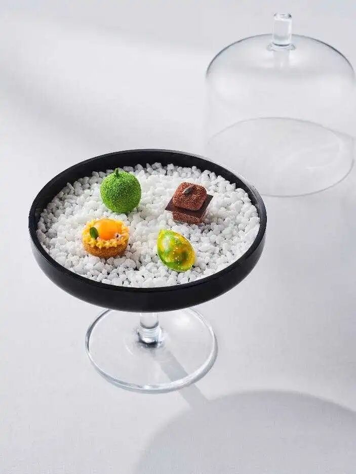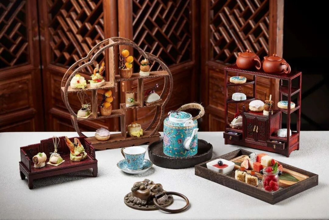 本次全新中式下午茶套餐里有4款咸点和6款甜点的丰富选择,包含口感绵密的山楂鹅肝慕斯、咸香四溢的伊比利亚火腿芦笋卷,造型精巧并且福气满满的金枪鱼沙拉福袋,浓郁的茶香和蜜桃完美结合的白桃乌龙泡芙,还有馥郁醇香萦绕味蕾的茉莉花柑橘蛋糕等精致美馔,甜咸海陆臻味汇集于此,醇厚与香甜在齿间迸发,为美食家们同时带来一场味蕾、艺术与视觉的多重盛宴。