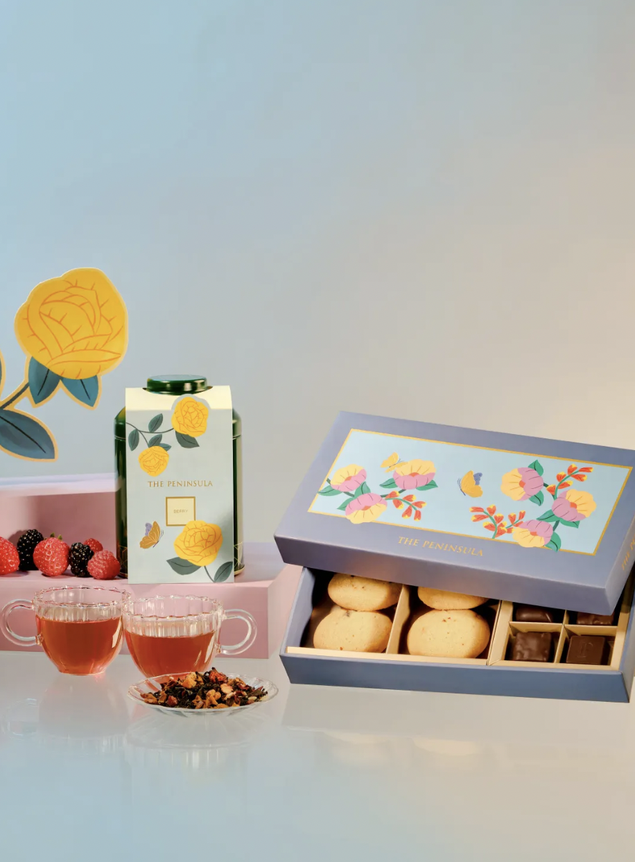 黄玫瑰礼盒,带来春日之喜悦。半岛名茶系列的最新成员莓果红茶,以象征友谊和喜乐的季节性黄玫瑰图案包装。以香醇的锡兰茶巧妙调配德国出产的苹果片、红甜菜、接骨木莓、黑莓和树莓,带有清新果香,味道怡人。另有火焰兰礼盒与山茶花礼盒。